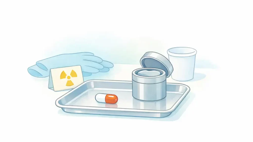 「放射性物質を飲む」と聞いてビビっていたけど、実際はカプセル1個を飲むだけで終了。所要時間は数分。