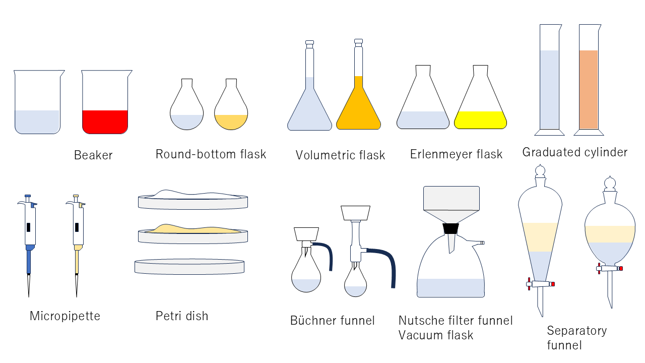 • Volumetric flasks, round-bottom flasks, beakers, four-neck flasks